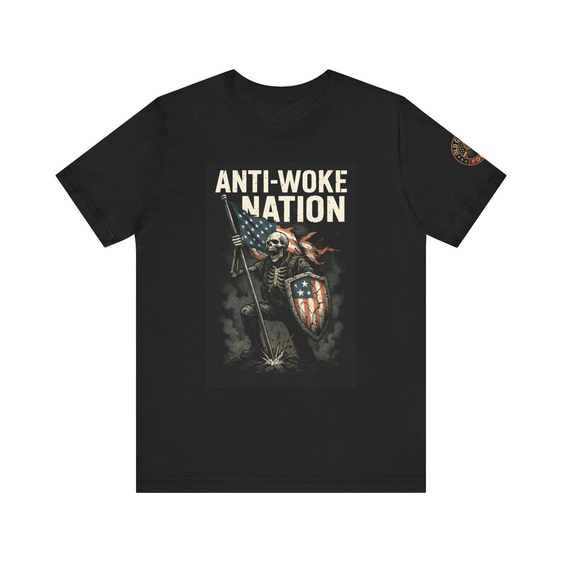 Anti-Woke Nation Flagbearer T-Shirt – Patriotic Warrior Graphic Tee